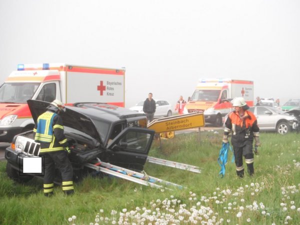 Die FF Sachsen hat nach der Ankunft am Einsatzort die Verkehrsabsicherung zusammen mit der FF Alberndorf-Steinbach gestellt. Danach wurde durch dein Einsatz der Hydraulischen Schere eine Person aus einem PKW befreit. Nach dem binden von Betriebsstoffen unterstützten die Wehren den Abtransport der Unfall-PKWs.