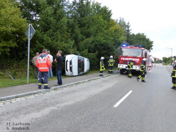 Sichern des allein beteiligten PKW und Verkehrsabsicherung