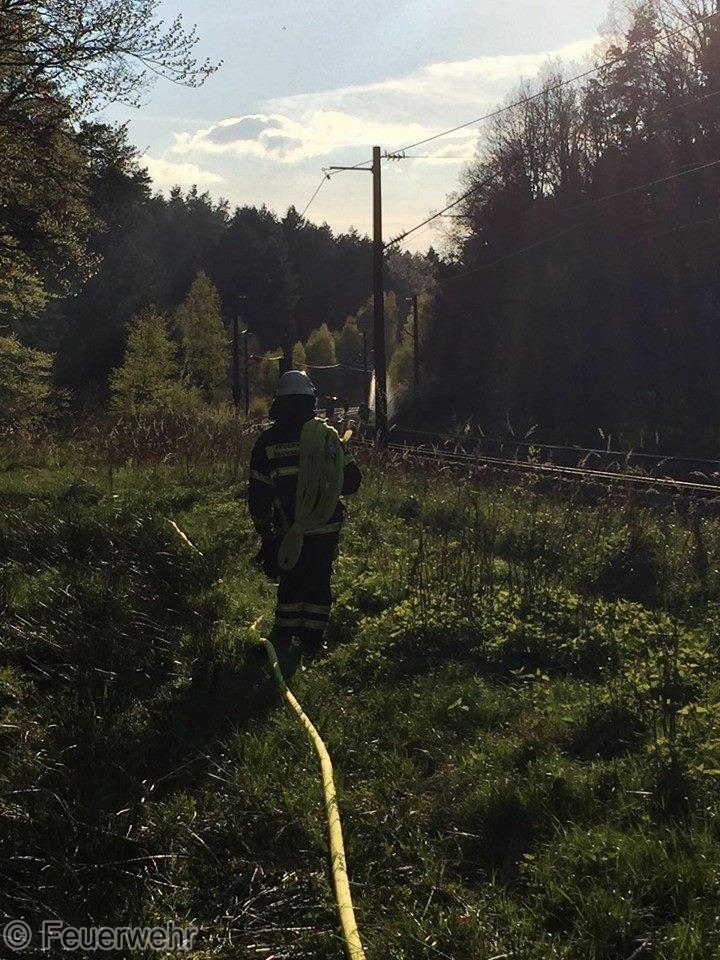 Heute wurden wir um 17:49 Uhr zu einem Bahndammbrand auf die Bahnstrecke Ansbach - Nürnberg alarmiert. Zwischen Sachsen b.A und Wicklesgreuth brannte auf einer Länge von etwa 20 m die Böschung.
