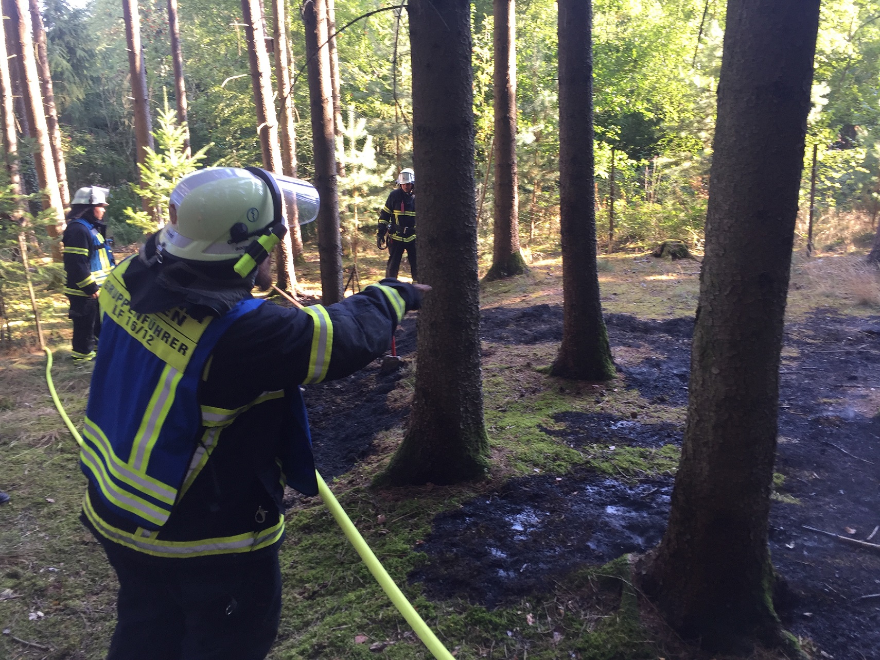 Heute wurden wir zu einem gemeldeten Brand im Waldgebiet zwischen Sachsen und Neukirchen alarmiert. Ein Spaziergänger hatte dort eine Rauchentwicklung festgestellt. Nach kurzer Suche konnte der Brandherd lokalisiert werden. Es wurde ein Löschangriff aufgebaut, um die ca. 35qm Fläche zu löschen. Um eine bessere Löschwirkung zu erzielen, wurde dem Wasser ein Netzmittel zugemischt. Da die 2000 Liter Wasser für die Fläche nicht ausreichten, wurde die Feuerwehr Neukirchen/Hirschbronn mit ihrem TSA angefordert, um eine Wasserversorgung aufbauen zu können. Zusätzlich brachten Landwirte mit Wasser gefüllte Güllefässer zur Einsatzstelle, wodurch der weitere Löschangriff sichergestellt werden konnte. Nach ca. 3 Stunden war der Brand und alle Glutnester vollständig gelöscht und die Feuerwehren konnten wieder einrücken.