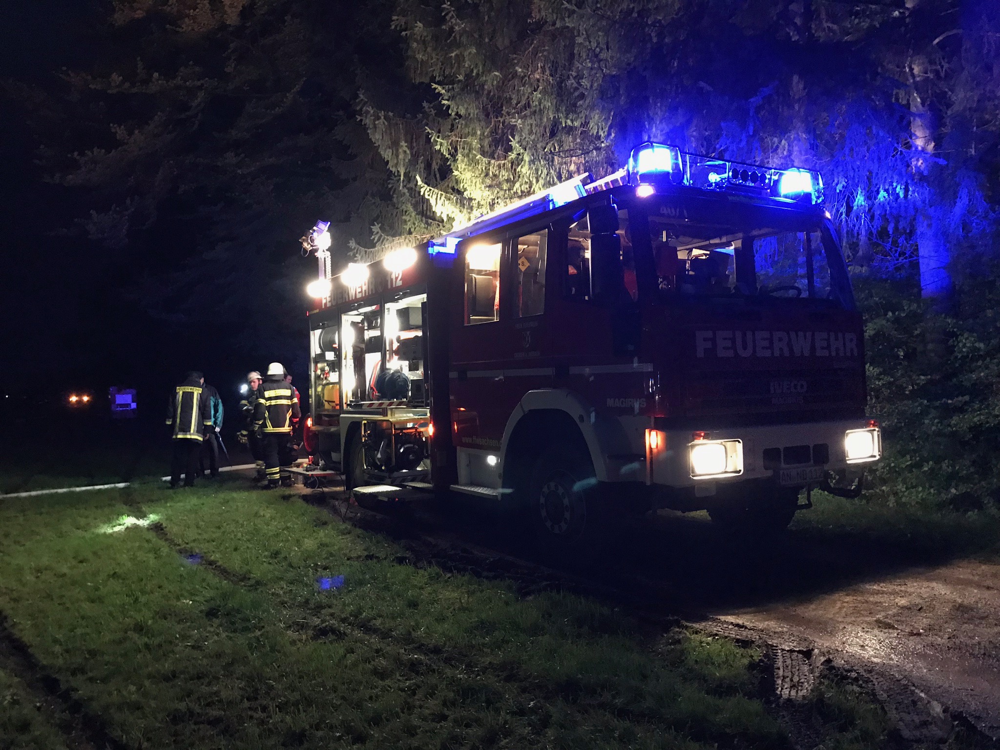 Am Freitag den 06.10.17 wurden die Feuerwehren der Gemeinde Sachsen zu einem Waldunfall mit Waldbrand alarmiert. Die Übungsstelle befand sich zwischen Steinbach und Ansbach. Vor Ort wurde durch den Einsatzleiter unser Löschgruppenfahrzeug zur Personenversorgung und anschließender Befreiung eingesetzt. Eine Person war unter einem mit Holz beladenen Anhänger eingeklemmt. Durch einen Feuerwehrsanitäter wurde die Person medizinisch betreut. Zur Rettung der Person wurde der Anhänger mit Hebekissen angehoben und die Person mittels Spineboard und Schaufeltrage aus ihrer misslichen Situation befreit.