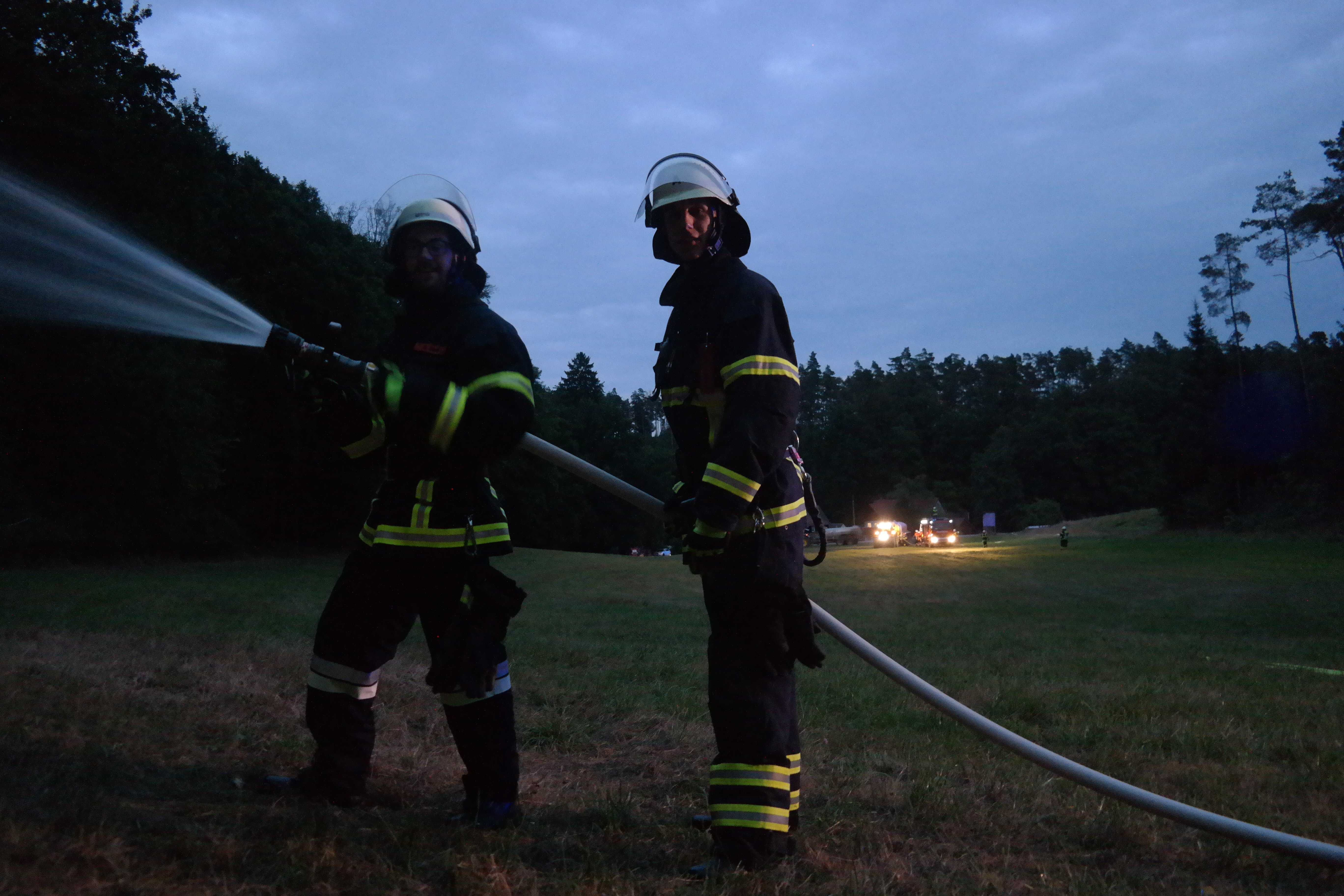 Während dessen baute die Feuerwehr Brodswinden und die Ortsteilwehren aus Neukirchen-Hirschbronn, Volkersdorf-Rutzendorf und Ratzenwinden eine Wasserversorgung auf. Die Wasserversorgung wurde durch Wasserentnahme aus einem Weiher, einem Bach und durch Pendelverkehr durch Güllefässer gesichert. Es war eine Wasserförderung über lange Schlauchleitungen notwendig. Insgesamt wurden ca. 60 B-Schläuche (1200 Meter) und 25 C-Schläuche bei der Übung verwendet. Im Einsatz waren 2 B-Rohre und 10 C-Rohre. Insgesamt haben 75 Feuerwehrfrauen und Männer an der Übung teilgenommen. Vor Ort war außerdem die Unterstützungsgruppe örtliche Einsatzleitung des Landkreises Ansbach.